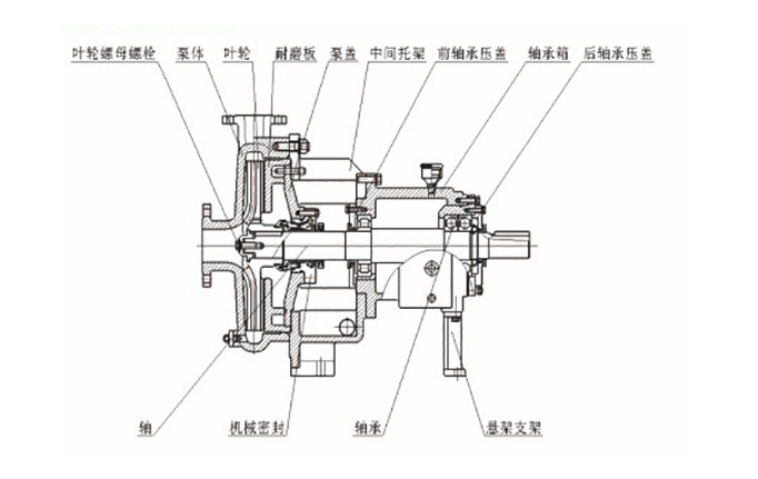5)葉輪輪毂(gū)與泵蓋間(jian)有較大的(de)錐形空間(jian),防止固相(xiàng)介✉️質進⛱️入(rù)軸封。